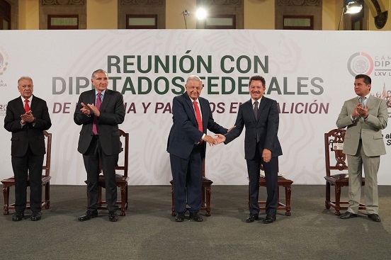 El presidente Andrés Manuel López Obrador dio su espaldarazo al secretario de Gobernación, Adán Augusto López Hernández, ante los diputados de Morena y sus aliados, quienes respondieron al grito de “¡presidente, presidente!”. AMLO reconoció su capacidad de conciliación con legisladores, gobernadores y el Poder Judicial.