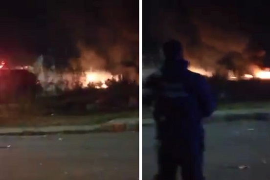En redes sociales circulan videos en los que se observa la zona en llamas, vigilada por elementos de la Policía Municipal.