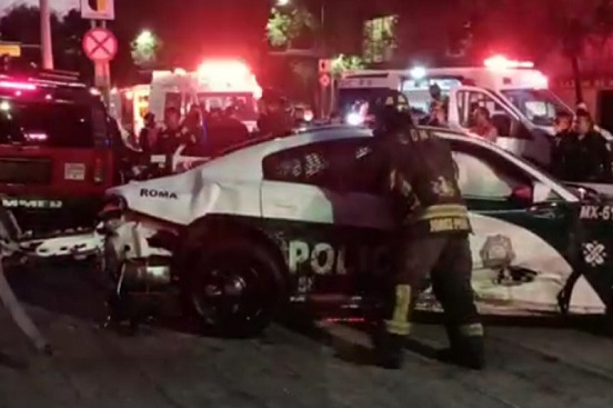 Sin embargo, los tres policías del sector Roma y las dos mujeres del automóvil gris quedaron heridos y de inmediato fueron valorados por paramédicos del Escuadrón de Rescate y Urgencias Médicas (ERUM) que arribaron al sitio.