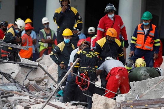 En su balance anterior, había informado de 27 fallecidos, pero brigadas de bomberos y rescatistas trabajaron la madrugada del domingo buscando cuerpos bajo los escombros de la edificación ubicada en La Habana Vieja.