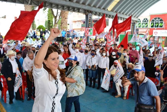La candidata por la alianza Va por Hidalgo, Carolina Viggiano Austria, visitó el municipio de Tlanalapa en donde se comprometió con sus habitantes a mejorar la seguridad pública de la zona.