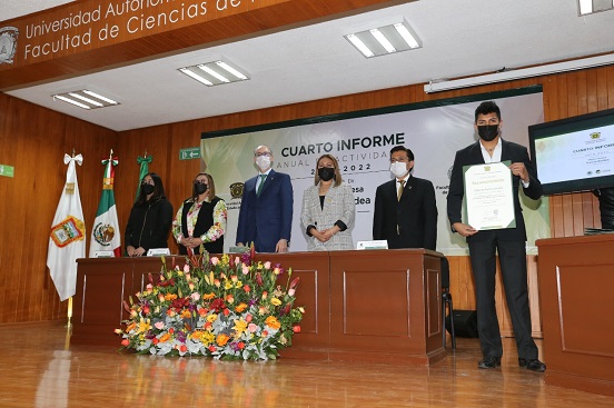 Al encabezar el Cuarto Informe Anual de Actividades 2018-2022 que rindió la directora de FaCiCo, María Teresa García Rodea, el rector de la UAEMéx reconoció el trabajo inclusivo que se desarrolla en ese espacio académico que destaca por el desarrollo de proyectos de investigación con clara pertinencia social y alta productividad científica.