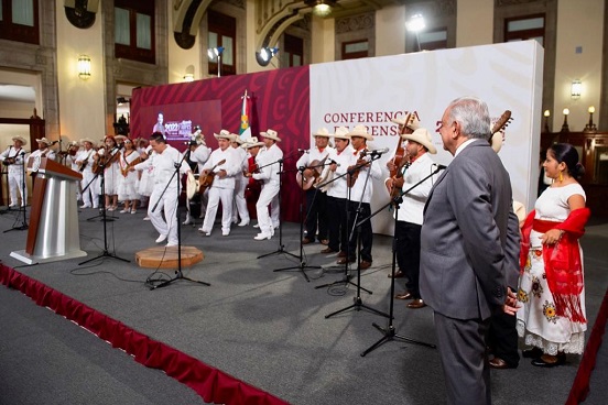 Al final de la conferencia mañanera, el grupo musical “Veracruz me llena de orgullo” ofreció un festival para las mamás de México.
