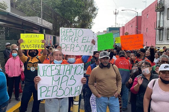 Cientos de trabajadores de limpia del Sistema de Transporte Colectivo Metro se reunieron la mañana de este miércoles al exterior de las oficinas centrales ubicadas en el número 67 de la calle Delicias en la colonia Centro.