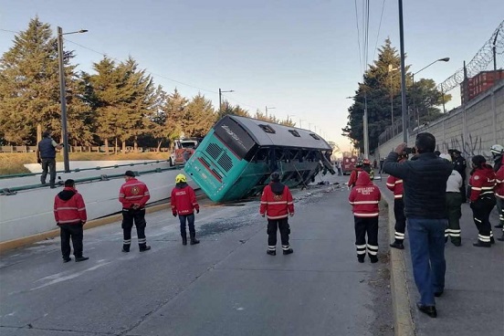 Un autobús de pasajeros de la línea Turistar se volcó cuando circulaba sobre la lateral de Paseo Tollocan antes de su cruce con Comonfort, dejó saldo de dos personas muertas y cerca de 20 lesionados.