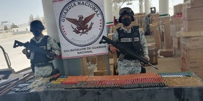 En Chihuahua, Guardia Nacional y Aduanas de México aseguran armas, cartuchos y cargadores