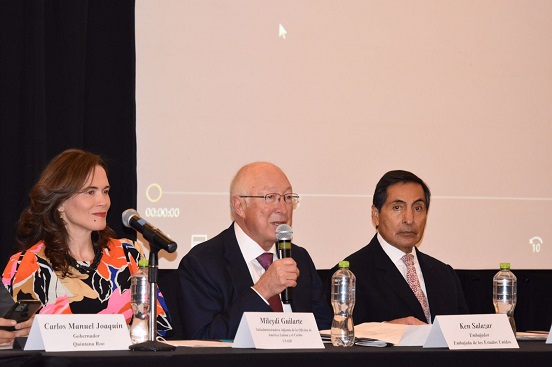 Al participar en la 5a reunión de gobernadores del Sur-Sureste de México con la embajada de Estados Unidos, en la que se anunció por parte de la USAID una inversión por 30 millones de dólares en desarrollo de mercados amigables con el medio ambiente ayudando a tener un impacto positivo en las comunidades, el funcionario reiteró que todos los proyectos hoy en marcha deberán quedar concluidos en esta administración, de acuerdo con la instrucción del presidente de la República.