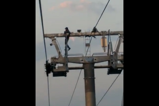 En la grabación se observa al hombre arriba de la torre mientras las góndolas operaban con normalidad. Quien filma destacó que al parecer el sujeto se quería robar algo, luego comenzó a gritarle que se bajara de la torre.