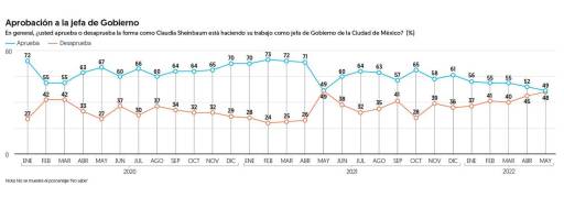 Metodología: Encuesta en la Ciudad de México realizada vía telefónica a 500 adultos el 11-12 de mayo de 2022. Se hizo un muestreo probabilístico de teléfonos residenciales y celulares en las 16 alcaldías. Con un nivel de confianza de 95%, el margen de error de las estimaciones es de +/-4.4 por ciento.
