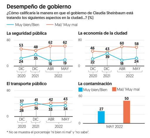 En días recientes el gobierno capitalino anunció que los índices de homicidios en la ciudad habían bajado, y que la Ciudad de México se ubicaba como una urbe más segura que Nueva York. De acuerdo con la encuesta, la inseguridad es lo que más negativamente evalúan los capitalinos.
