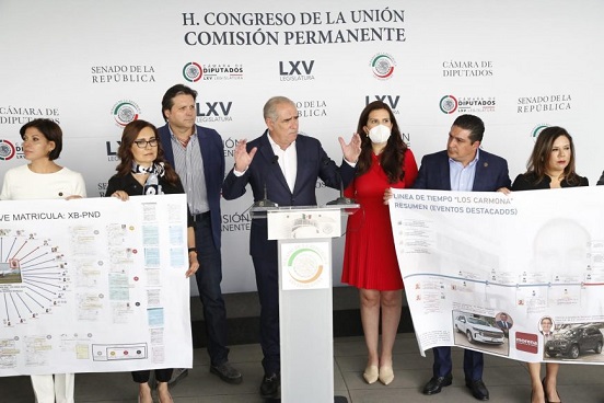 “También es sabido que estos recursos venían de parte del señor Sergio Carmona; sabemos, y aquí está plenamente acreditado, que no solamente recursos económicos, sino también apoyaban a los candidatos con vehículos blindados. También tenemos acreditado esta relación de Sergio Carmona, con el propio presidente del Partido de Morena, con Mario Delgado”, sostuvo.