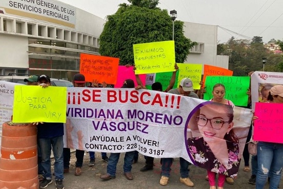 Este martes, se plantaron en la unidad de Servicios Periciales de la Fiscalía General de Veracruz para exigir información sobre las indagatorias realizadas de la búsqueda de Viridiana Moreno.