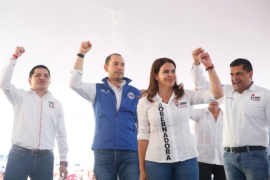 Con el coro de fondo ¡Caro gobernadora! ¡Caro gobernadora!, Cortés Mendoza resaltó que la candidata ganó la campaña y ganará la gubernatura el 5 de junio.