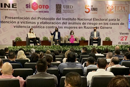 El Instituto Nacional Electoral (INE) presentó el Protocolo para la atención a víctimas y la elaboración del análisis de riesgo en los casos de Violencia Política contra las Mujeres en Razón de Género, en el marco del Proceso Electoral Local 2021-2022 en Durango.