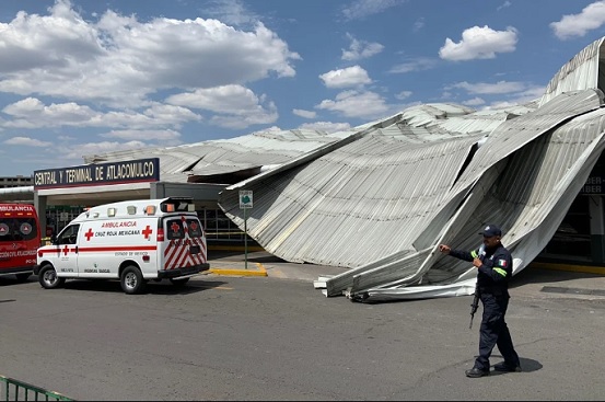 Por este derrumbe la terminal de camiones de Atlacomulco permanecerá cerrada de forma provisional en tanto concluye el dictamen de Protección Civil.