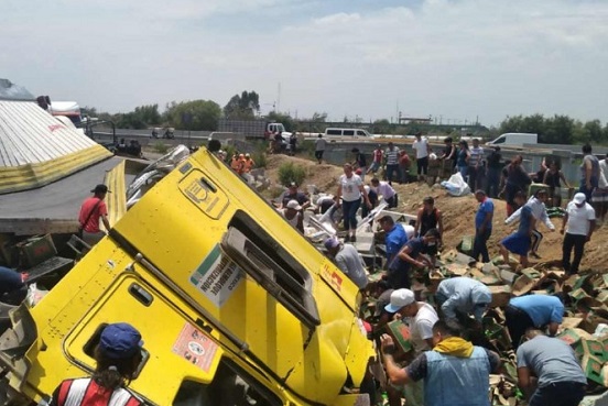 En el sitio se reportan actos de rapiña tras el incidente vial que dejó cientos de cajas con botellas de cerveza esparcidas por la vialidad. Imágenes compartidas en redes sociales exhiben a personas buscando entre la mercancía.