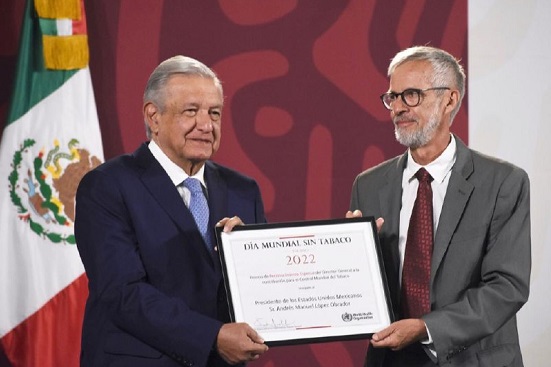 El premio fue entregado por el representante de la OMS y la Organización Panamericana de la Salud (OMS/OPS) en México, Miguel Malo Serrano, en reconocimiento a su “liderazgo y apoyo inquebrantable para fortalecer las medidas de control de tabaco en México”.