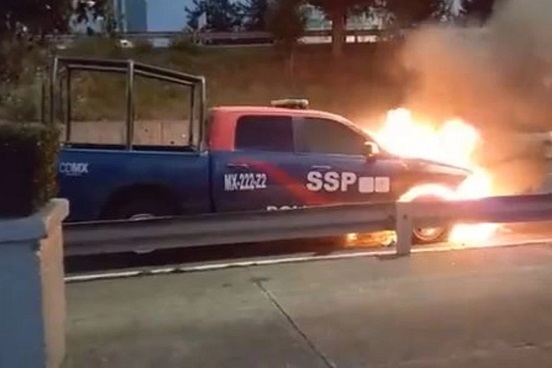 La tarde-noche de este lunes una patrulla perteneciente a la Secretaría de Seguridad Ciudadana de la CDMX se quemó, esto a la altura del centro comercial de San Fe, sobre la carretera México-Toluca.