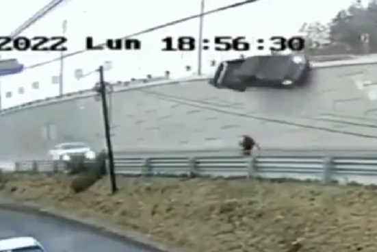 El clip viral se ve cómo una camioneta cae de cerca de 15 metros de altura, cerca de un hombre que caminaba, y pudo evitar ser aplastado. Quien manejaba esa unidad, perdió la vida por el impacto.