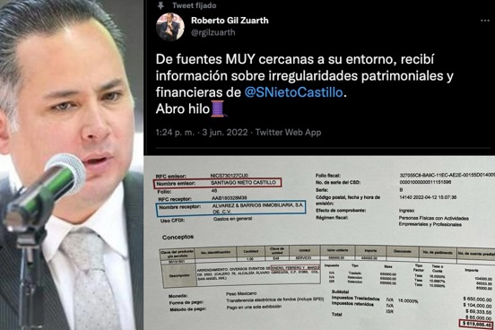 En un hilo que subió a su cuenta de Twitter, Gil Zuarth presentó documentos que podrían comprobar que Nieto se habría beneficiado simulando contratos con empresas fachadas y recibiendo recursos vía de colaboradores cercanos.