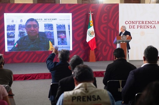 Concluyó con un agradecimiento por la solidaridad que ha tenido la población oaxaqueña aportando maquinaria, «hoy se acordó por aportación de Marina de 80 mil litros de diésel que se estarán dispersando para apoyar la maquinaria que se ha aportado de manera solidaria y otras que aporta el gobierno federal especialmente el tema del agua».