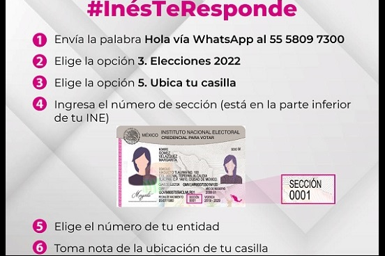 También el INE ha habilitado un chatbot #InesTeResponde que a través de un mensaje de Whatsapp te puede auxiliar para conocer la ubicación de tu casilla.