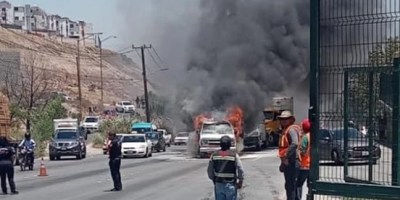 Camioneta en llamas y fuera de control choca contra camión en Tijuana