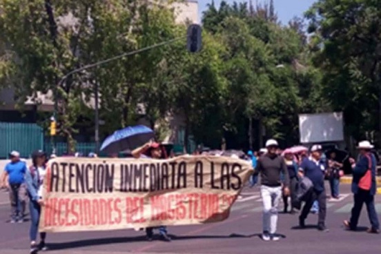 Integrantes de la Coordinadora Nacional de Trabajadores de la Educación (CNTE) realizaron una marcha de la Plaza de la Constitución hacia oficinas del ISSSTE.