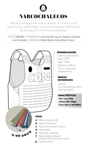 Y no sólo eso, si no que los narcotraficantes también han hecho despliegue de su ego a través de ellos: en estados fronterizos como Nuevo León y Coahuila, un gran número de los chalecos incautados de 2018 a la fecha estaban personalizados.