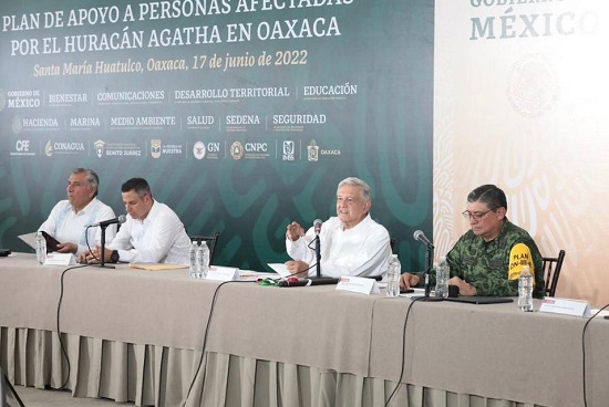 Durante la reunión para evaluar las acciones para enfrentar los daños provocados por el huracán Agatha, se informó que en conjunto para atender la emergencia como para la reconstrucción de infraestructura y reposición de daños en viviendas y pérdidas materiales, se canalizarán 6 mil 513 millones de pesos. Destacan las partidas que se destinarán a restaurar los caminos federales y estatales por un monto superior a mil 800 millones de pesos y los casi mil 200 millones de pesos que se entregarán a los 31 municipios para que definan sus prioridades para reconstrucción.