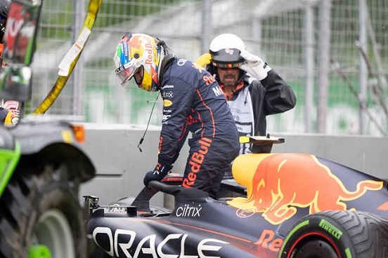 Pese a que el mexicano quería volver a la pista, le fue imposible meter la reversa de su RB18 y tuvo que bajar del auto para que la grúa pudiera retirarlo del trazado, por lo cual se activó la bandera roja. Checo marchaba octavo antes del incidente.
