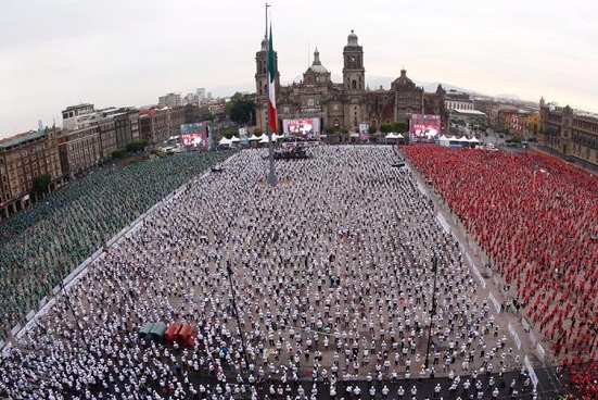 Más de 40 mil personas se reunieron en la plancha del Zócalo capitalino, quienes debían cumplir con ciertos requisitos, como conservar su lugar y seguir las instrucciones de un profesor de box.