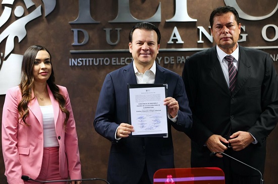 Esteban Villegas Villarreal, candidato por la coalición PAN- PRI-PRD recibió su constancia de mayoría que lo acredita como gobernador electo de Durango, aseguró a la ciudadanía que hará un «gran trabajo» por la ciudadanía e hizo el llamado a los demás partidos a dejar atrás el proceso electoral y sumarse a un solo proyecto llamado Durango.