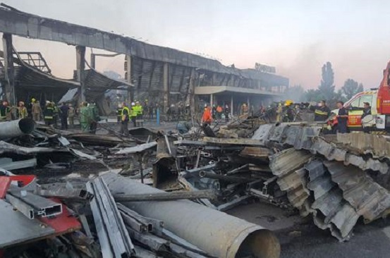 Alrededor de un millar de personas, entre servicios de emergencia, bomberos y policías, trabajan para encontrar a los todavía 21 desaparecidos en un ataque en un ciudad de la región de Poltava que ha suscitado la condena unánime de la Unión Europea (UE) y de EEUU.