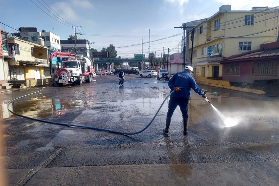 Con una fuerza de trabajo de 117 elementos del Grupo Tláloc, 16 equipos de bombeo, 31 bombas de achique, cuatro camiones de volteo y tres tipo cisterna se abatieron encharcamientos en diversos puntos de San Mateo Atenco y, en este momento, se trabaja en la limpieza y desinfección de la Av. Benito Juárez en dos tramos, hacia Tollocan y Av. Las Torres.