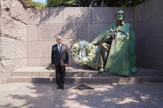 El presidente Andrés Manuel López Obrador visitó el Memorial a Franklin D. Roosevelt y el Monumento Conmemorativo Nacional de Martin Luther King Jr, en Washington, Estados Unidos, como parte de sus actividades durante su gira en la capital de ese país.