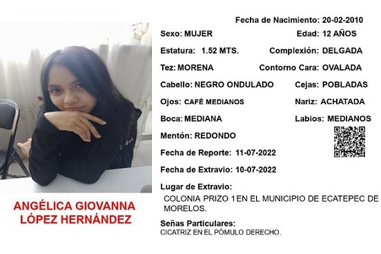 El último día que fue vista Angélica fue el 10 de julio, salió de su casa en la colonia Priso 1 y atravesó la calle, un sujeto salió de un vehículo blanco, platica un segundo con ella y se ve cómo la menor de edad subió al coche. Desde entonces nadie sabe dónde está.