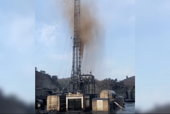 A través de redes sociales se compartieron videos de la mezcla que salía del pozo y alcanzó varios metros de altura debido a la presión; así como de la superficie manchada por el aceite.