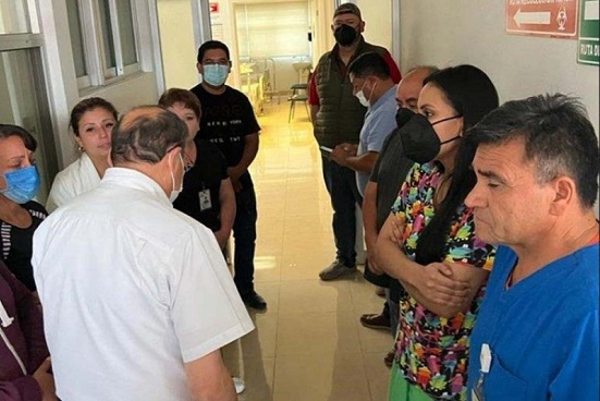 El secretario de Salud, Sergio González Romero, acudió al punto para respaldar al personal médico.