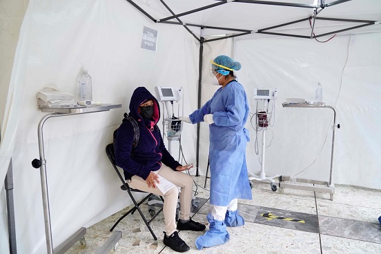 De ser necesario se le realiza una prueba rápida y en caso de salir positiva él o la paciente recibe una valoración médica. Si alguno de los pacientes en este punto es detectado con datos de gravedad es enviado a un hospital de segundo nivel de atención de manera inmediata.