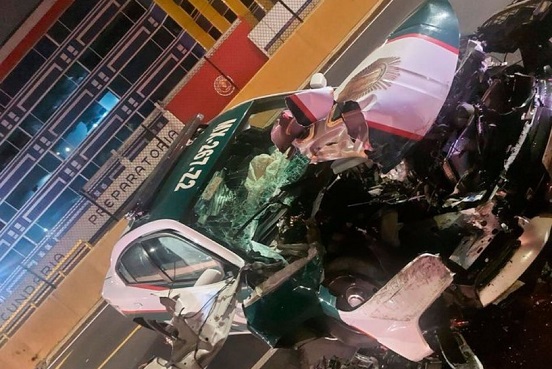 La patrulla de la policía capitalina, con número MX-267-Z2, quedó destrozada prácticamente en la parte frontal y los primeros reportes indican que hay dos elementos de seguridad lesionados.