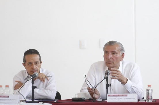 En jornada de trabajo por el estado de Quintana Roo, el secretario de Gobernación, Adán Augusto López Hernández, en coordinación con el gobernador en la entidad, Carlos Manuel Joaquín González, encabezó en Cancún la firma de un acuerdo con constructores y sindicatos locales de transporte para desarrollar sin contratiempos las obras del Tren Maya.
