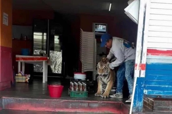 Tras el hecho, un vecino de la localidad logró captar la imagen del tigre cuando era sacado del interior de la taquería, pues al parecer llegó al establecimiento por el olor a carne.
