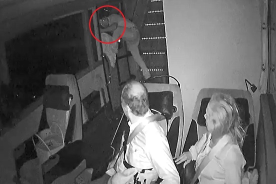 Hecho ocurrido el pasado 21 de julio alrededor de las 11:31 de la noche; la cámara de video vigilancia al interior de un autobús de pasajeros que momentos antes había salido de Guadalajara con destino Tamaulipas, captó el momento exacto en el que uno de los pasajeros intentaba arrancar el extintor en varias ocasiones.