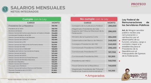 A pesar de que la ley indica que ningún servidor público puede ganar más que el presidente en turno, al menos tres perciben salarios mensuales de más de 280 mil pesos; es decir, una cifra que supera al doble al salario de Andrés Manuel López Obrador.