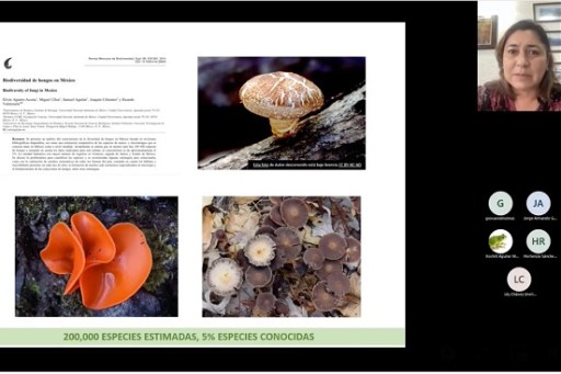 Cristina Burrola Aguilar concluyó su participación enfatizando que “sin hongos no hay bosque y sin bosque no hay hongos. Su asociación es un continuo y complejo mutualismo que los especialistas llamamos el internet en las plantas y los hongos”. Invitó a adentrarse en la investigación micológica, ya que -dijo- a nivel mundial existen cerca de un millón de especies de hongos y solo se conoce 7% de ellas, mientras que en nuestro país hay alrededor de 200 mil especies y solo se tiene conocimiento de 5% de los mismos, por lo que conocerlos ayudará al mantenimiento de los ecosistemas e incluso, puede evitar el cambio climático.