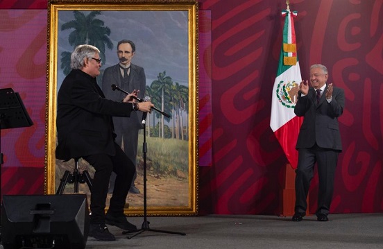 El cantautor Amaury Pérez se presentó este martes en la conferencia matutina del presidente Andrés Manuel López Obrador, como parte de un homenaje al “pueblo cubano” por la conmemoración del Día de la Rebeldía.