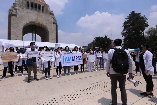 Diversas asociaciones de estudiantes de medicina, entre ellos, “Pasantes de servicio social de la CDMX”, “Asamblea Mexicana de Médicos Pasantes de Servicio Social” y la “Asociación Mexicana de Médicos en formación” convocaron a una marcha pacífica del Monumento de la Revolución al Zócalo capitalino.