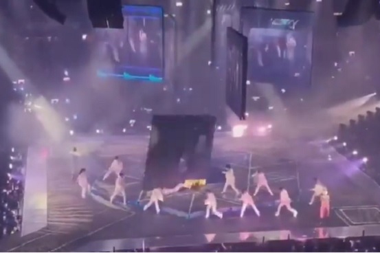 En los videos se aprecia el momento en el que los integrantes de Mirror y sus bailarines cantaban y bailaban cuando la enorme pantalla impacta en uno de ellos, de inmediato se escuchan los gritos de horror de los asistentes.