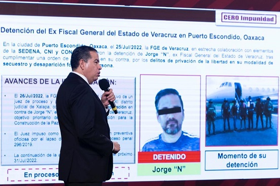 Señaló que se cumplimentó una orden de aprehensión en su contra por los delitos de privación de la libertad en su modalidad de secuestro y desaparición forzada de persona.